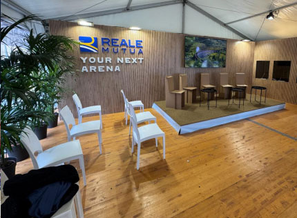 Evento corporate con progettazione e allestimento, più gestione operativa.